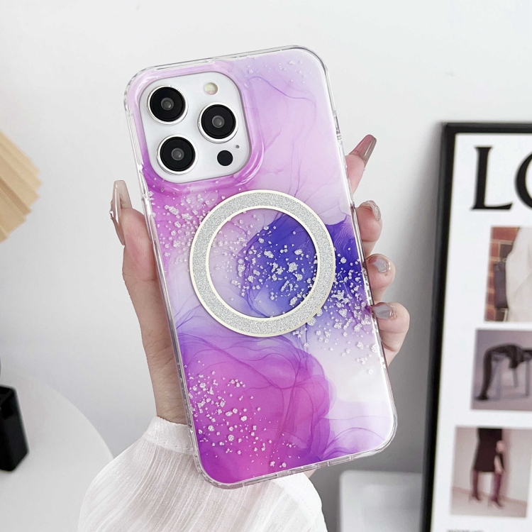 Estuche para Teléfono iPhone 15 Pro Imd Marble Magsafe Doble Cara (Púrpura Manchado)