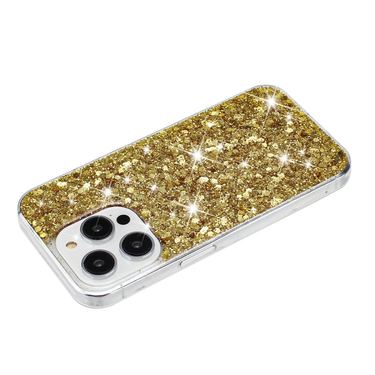 Estuche para Teléfono iPhone 15 Pro Transparente con Purpurina en Polvo TPU (Dorado)
