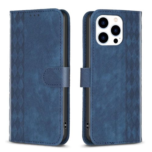 Funda de Teléfono Apple iPhone 15 Pro Cuero En Relieve a Cuadros (Azul)