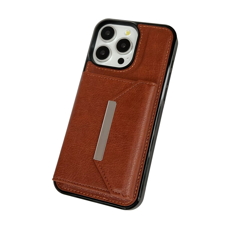 Funda para Teléfono iPhone 15 Pro con Bolsa Ranuras para Tarjetas Hebilla de Metal (Marrón)