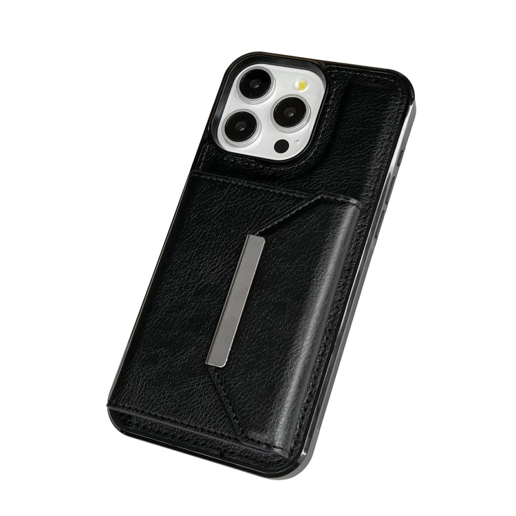 Funda para Teléfono iPhone 15 Pro con Bolsa y Ranuras para Tarjetas con Hebilla de Metal (Negro)