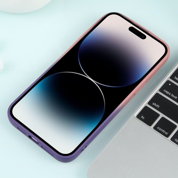 Funda de Silicona para iPhone 15 Pro Gradient Starry con Película de Lente (Rosa Púrpura)