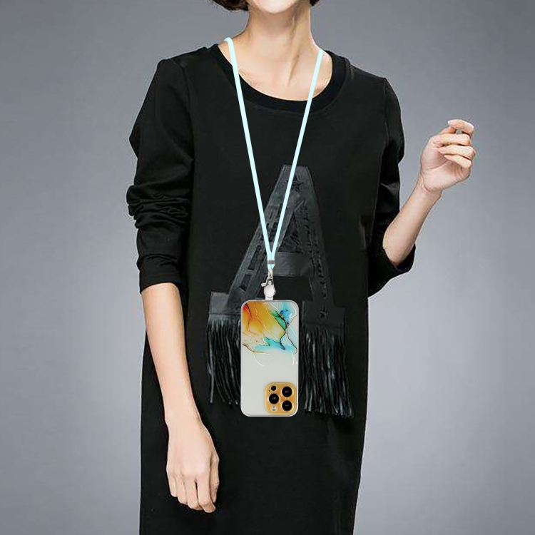 Funda para teléfono iPhone 15 Pro TPU a prueba de golpes con patrón Hollow Marble y cuerda (Amarillo)