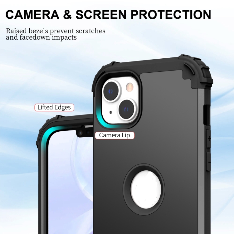 Funda de teléfono híbrida 3 en 1 para iPhone 15 Pro Max a prueba de golpes de silicona y PC (Negro)