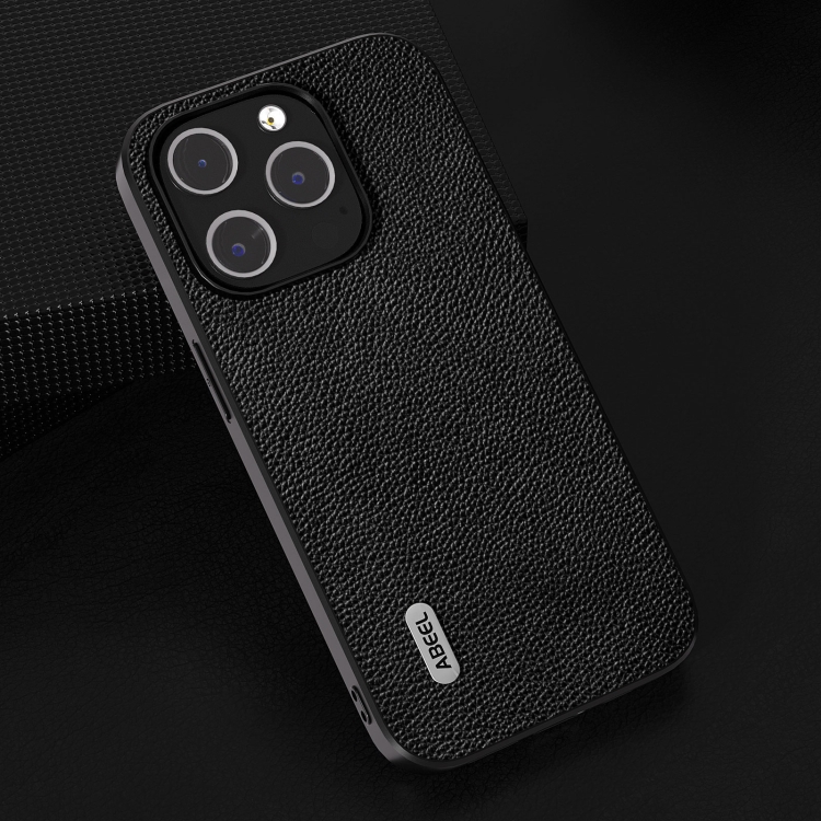 Funda para iPhone 15 Pro Max Abeel Black Edge Cuero Genuino para Teléfono Mino (Negro)