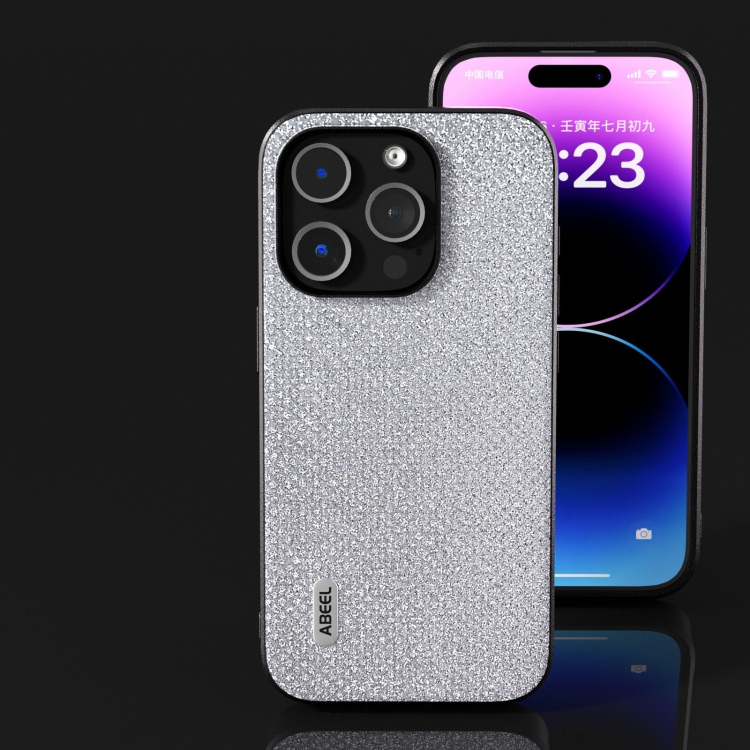 Funda para Teléfono Abeel Diamond Black Edge para iPhone 15 Pro Max (Joya Plateada)