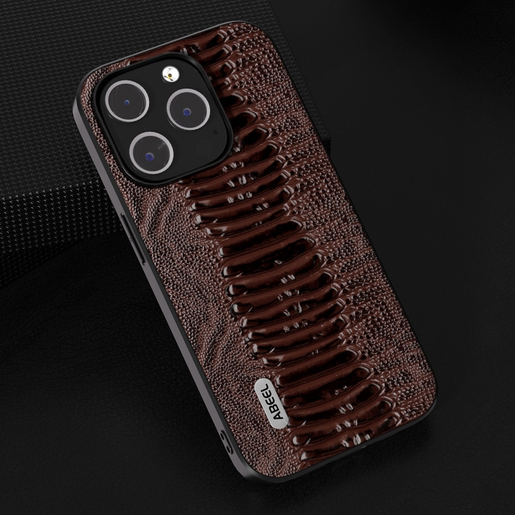 Funda de teléfono iPhone 15 Pro Max Abel serie Weilai cuero genuino (Café)