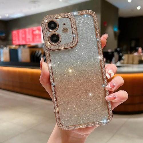 Estuche para Teléfono TPU iPhone 15 Pro Max con Brillo Degradado de Diamante (Dorado)