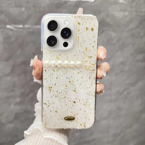 Estuche para Teléfono TPU iPhone 15 Pro Max con Lazo de Perlas y Lámina Dorada (Perla)