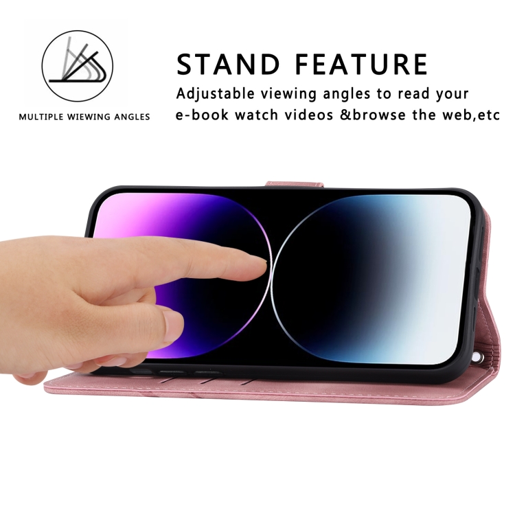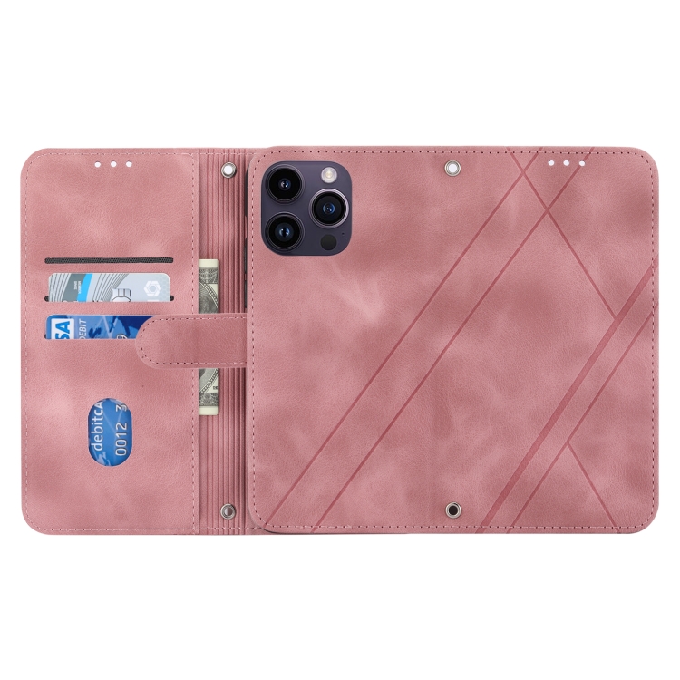 Funda de Cuero para iPhone 15 Pro Max con Línea en Relieve y Cordón (Rosa)