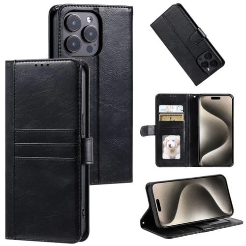 Funda para Teléfono iPhone 15 Pro Max Cuero con Billetera para 6 Tarjetas (Negro)