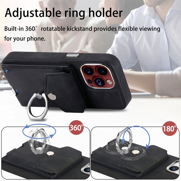 Funda para Teléfono iPhone 15 Pro Max con Billetera y Tarjeta Anillo Cuero (Negro)