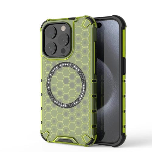 Funda para iPhone 15 Pro Max Honeycomb Magnetic Ring a Prueba de Golpes (Verde)