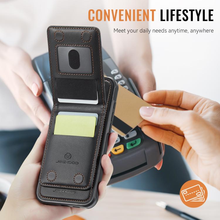 Estuche para teléfono Jeehood J06 para iPhone 15 Pro Max con tarjetero RFID Magsafe (Negro)