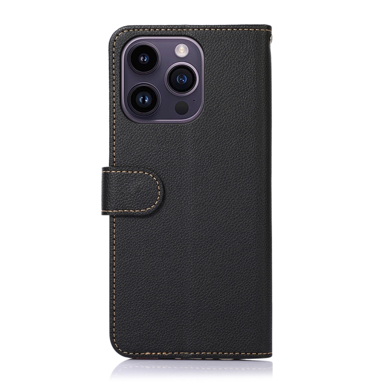 Funda para iPhone 15 Pro Max Khazneh Litchi Texture Leather Rfid Phone Case (Negro)