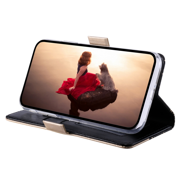 Funda de Cuero iPhone 15 Pro Max Patrón Encaje Botón Doble Cremallera con Cordón (Negro)