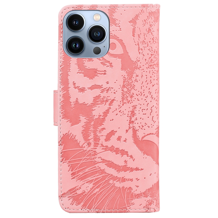 Funda de Cuero para Teléfono iPhone 15 Pro Max Tiger Embossing Pattern (Rosa)