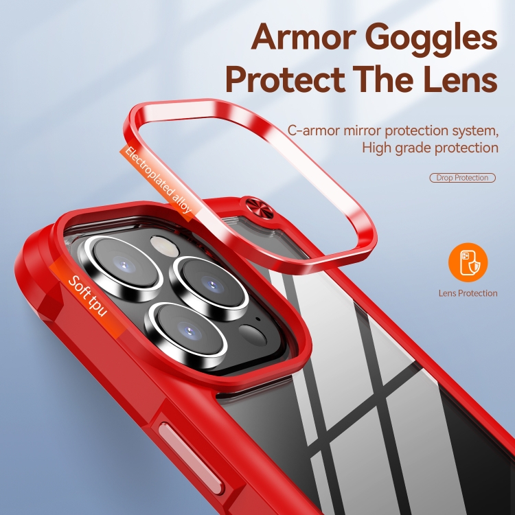 Funda para iPhone 15 Pro Max TPU + PC Protección Lente (Rojo)