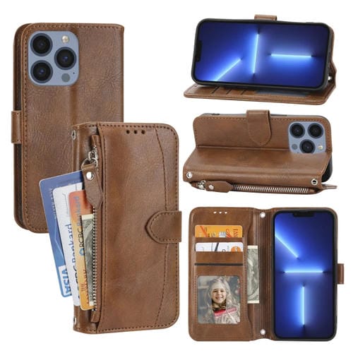 Funda para iPhone 15 Pro Oil Skin Zipper Wallet de Cuero para Teléfono (Marrón)