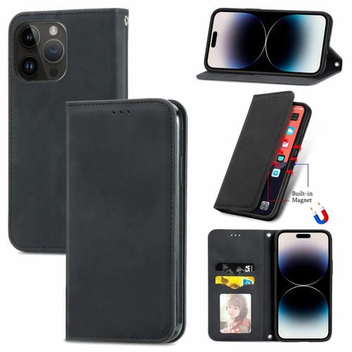 Funda Flip Leather para iPhone 15 Pro Retro Skin Feel Magnética (Negro)