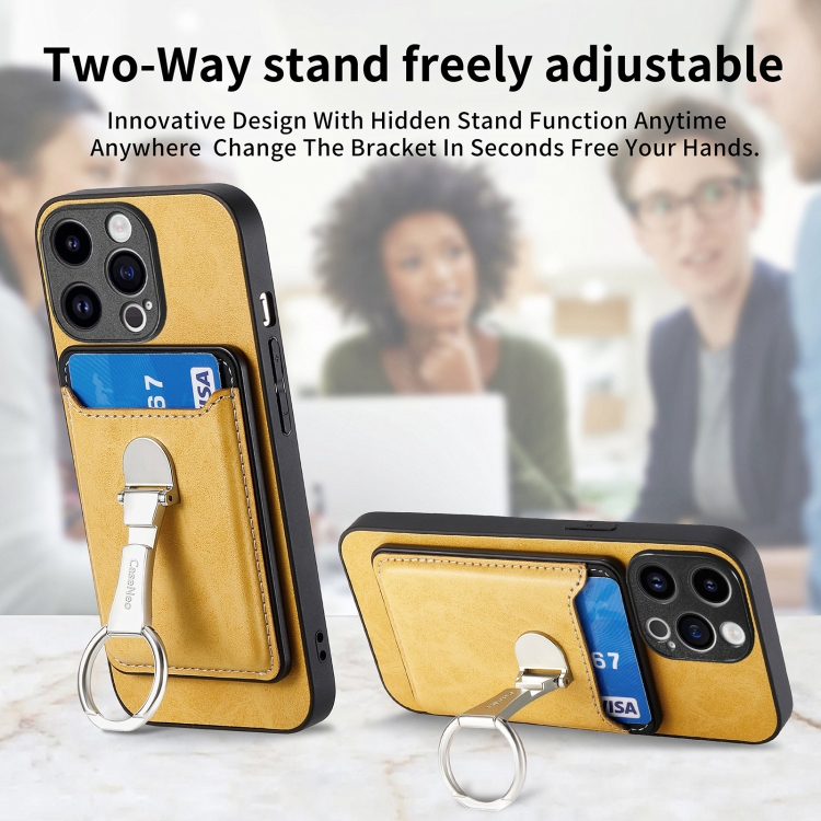 Funda para iPhone 15 Pro Skin Feel Ring Holder Wallet Magnética (Amarillo)