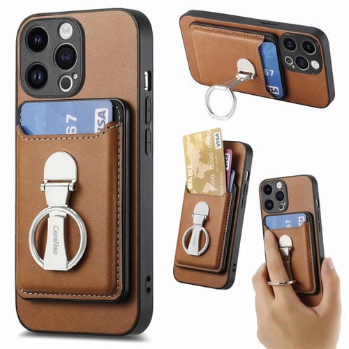 Funda para iPhone 15 Pro Skin Feel Ring Holder Wallet Magnética (Marrón)