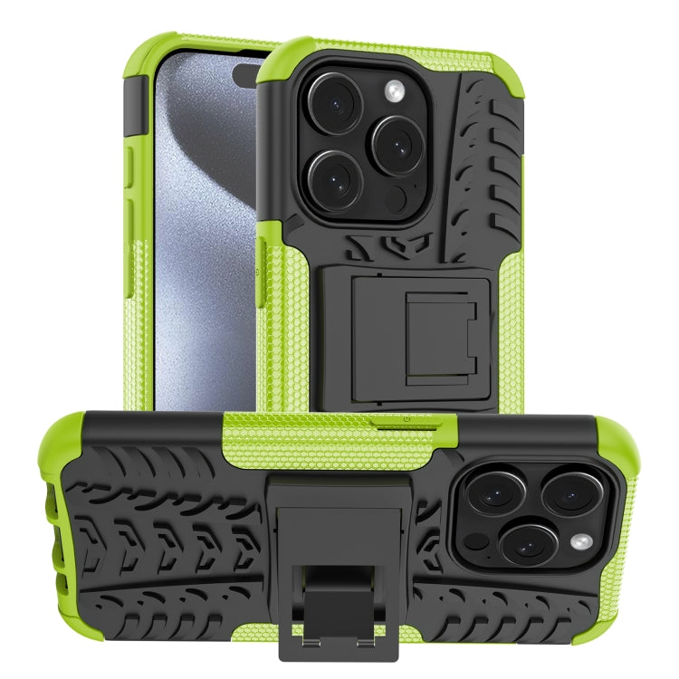 Funda para Teléfono iPhone 15 Pro Tire Texture TPU + PC con Soporte (Verde)