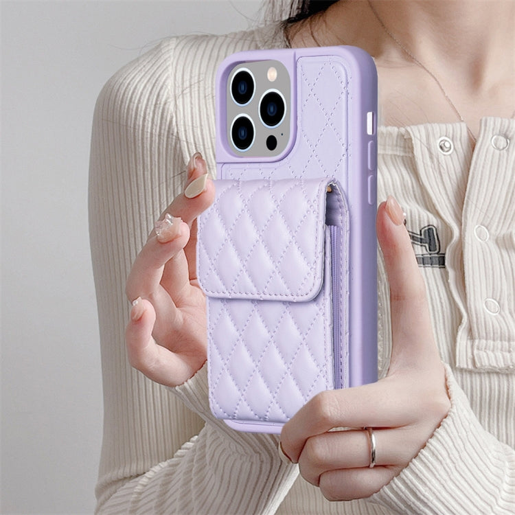 Funda Vertical Wallet Rhombic Leather para iPhone 15 Pro (Púrpura)
