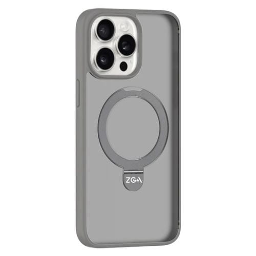 For iPhone 15 Pro ZGA Magsafe Holder PC Hybrid TPU Phone Case (Gray)