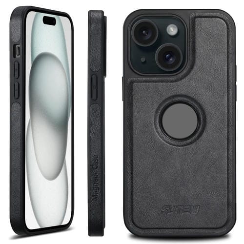 Funda Trasera Suteni G1 para iPhone 15 Magsafe de Cuero (Negro)