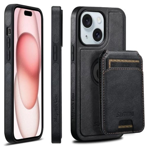 Funda para Teléfono Suteni M2 Oil Wax MagSafe para iPhone 15 con Bolsa para Tarjeta Horizontal (Negro)
