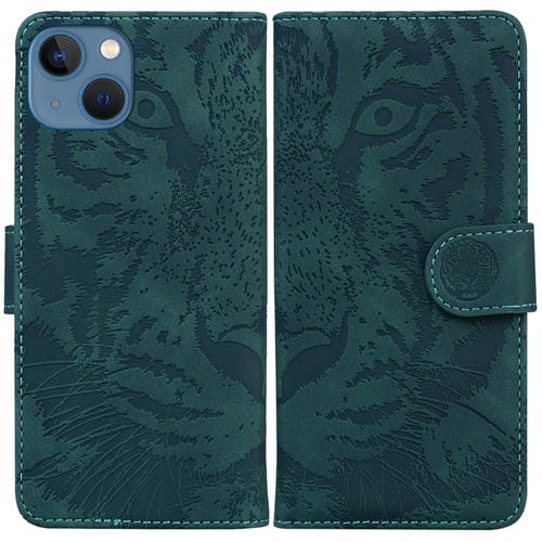 Funda para iPhone 15 Tiger Embossing Pattern Leather Phone Case (Verde)