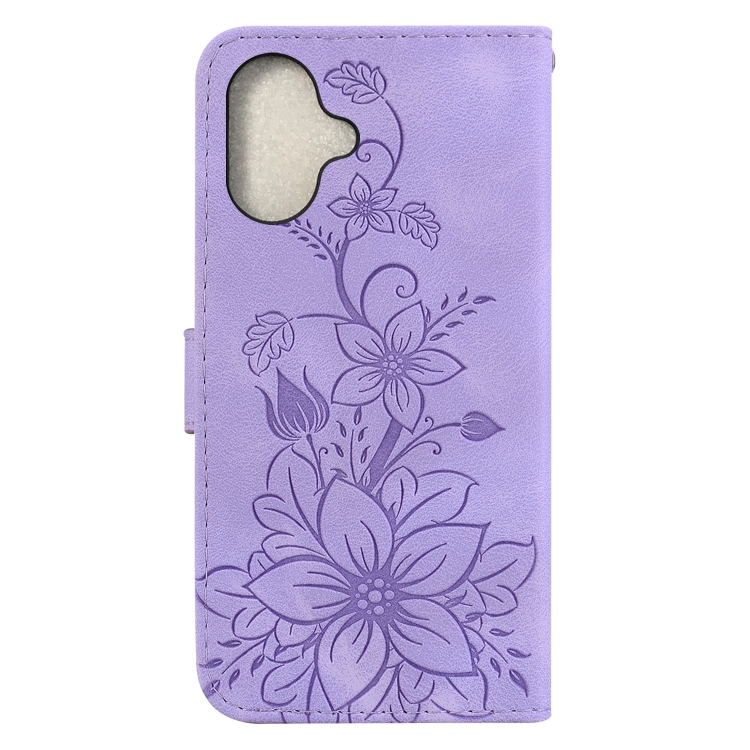 Funda de Cuero para iPhone 16 con Relieve Lily (Púrpura)