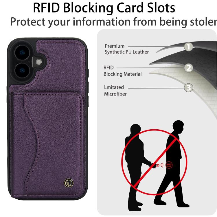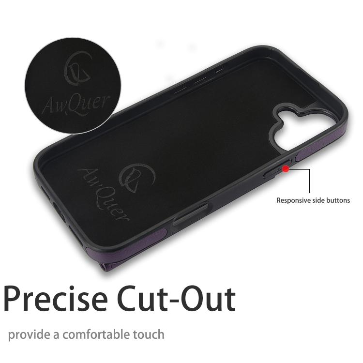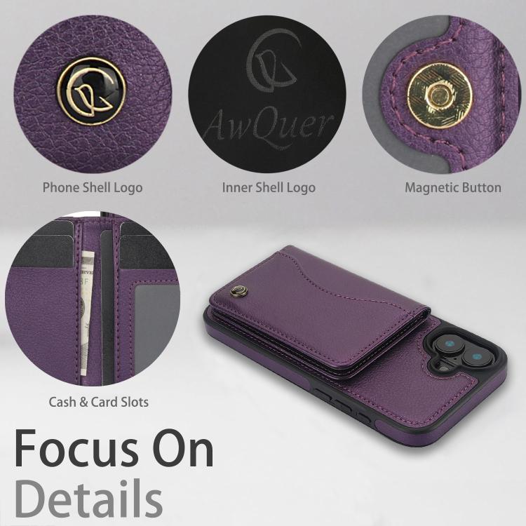 Funda para iPhone 16 Plus Awquer Cuero con Tapa Horizontal para Tarjetas y Soporte (Morado Oscuro)