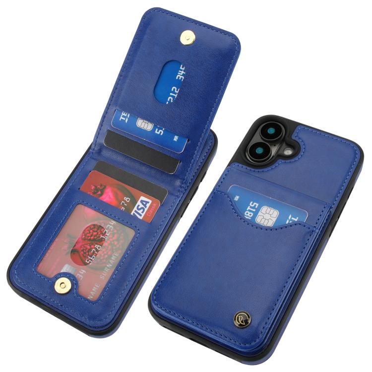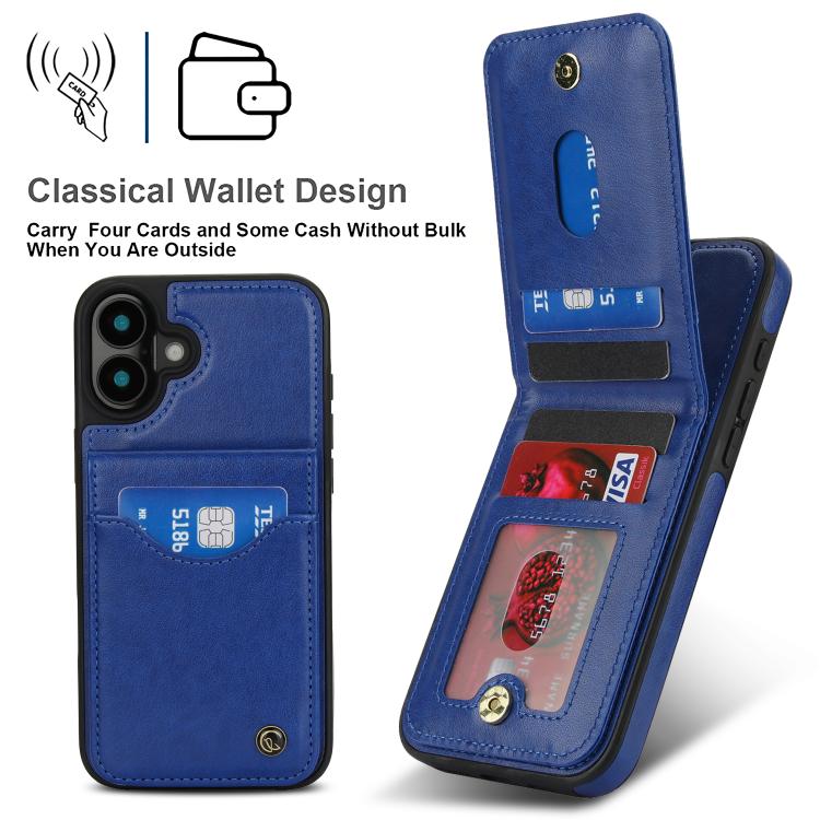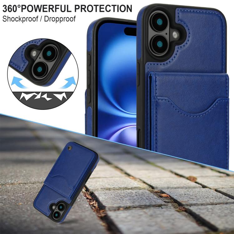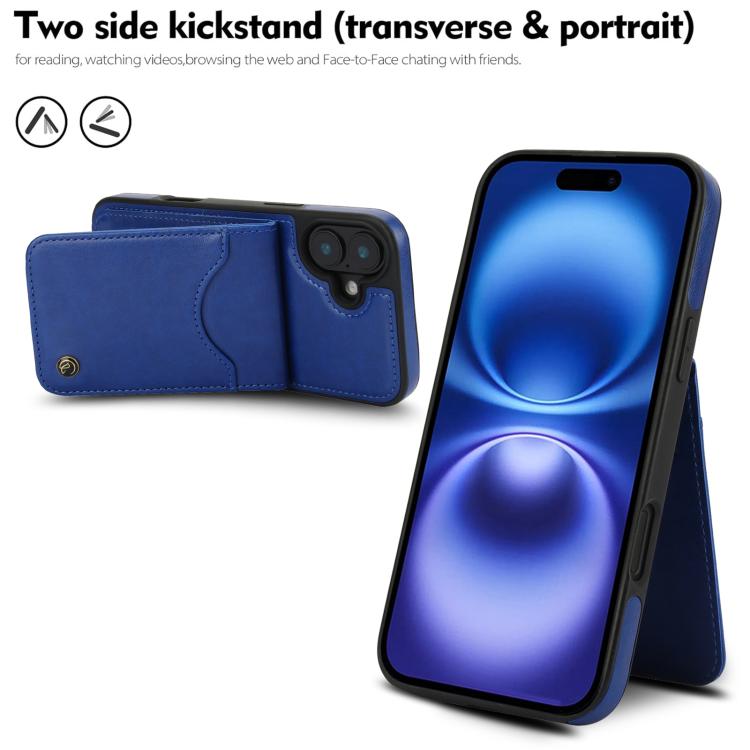 Funda para iPhone 16 Plus Awquer Cuero con Tapa Vertical para Tarjetas y Soporte (Azul)