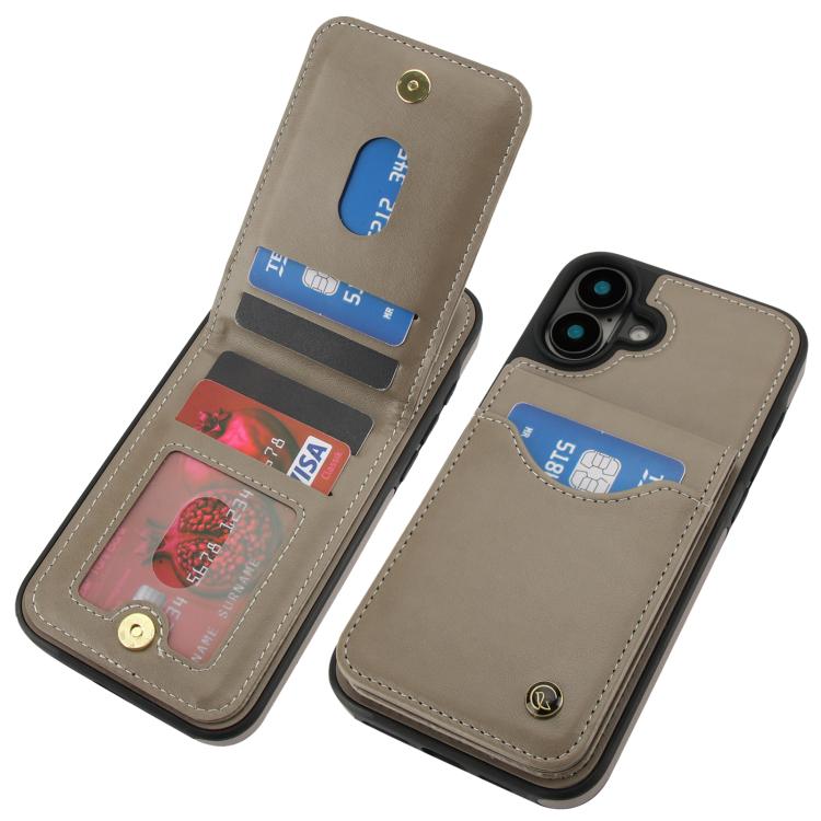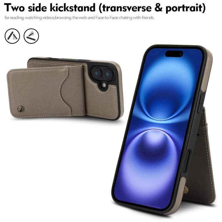 Funda para iPhone 16 Plus Awquer Cuero con Tapa Vertical para Tarjetas y Soporte (Gris)