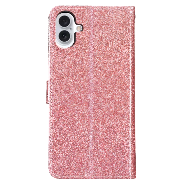 Funda para iPhone 16 Plus de Cuero con Tapa y Purpurina en Polvo (Oro Rosa)