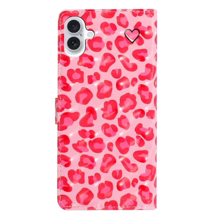 Funda para iPhone 16 Plus de Cuero con Patrón 3D Estampado de Leopardo Rosa