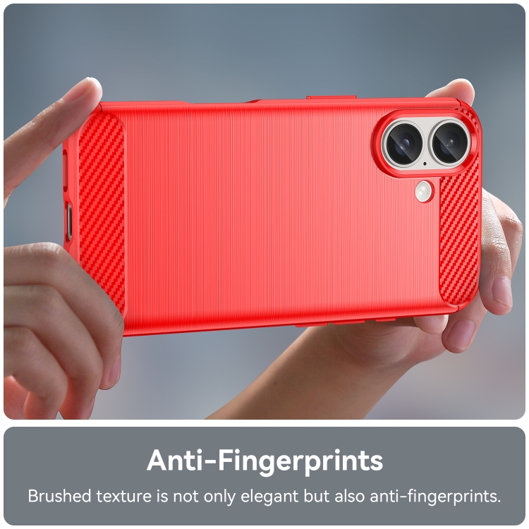 Funda de Teléfono TPU Fibra de Carbono para iPhone 16 Plus con Textura Cepillada (Rojo)