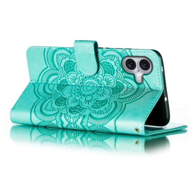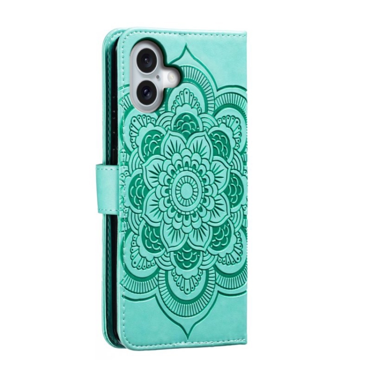 Funda para Teléfono iPhone 16 Plus Cuero con Tapa Horizontal y Patrón Mandala (Verde)