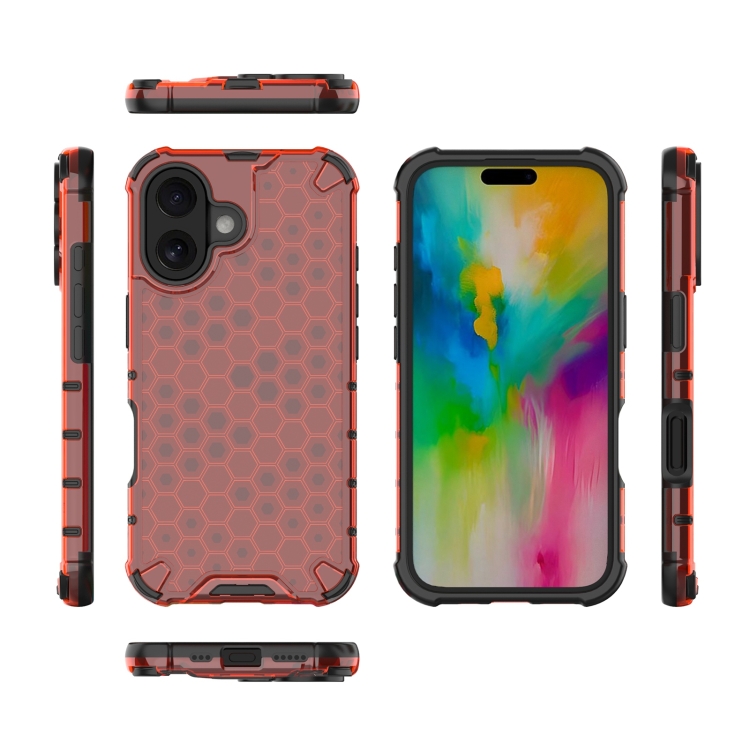 Funda para Teléfono iPhone 16 Plus Honeycomb a Prueba de Golpes (Rojo)