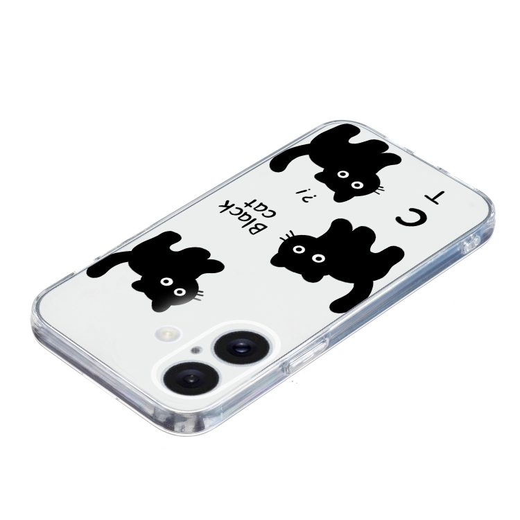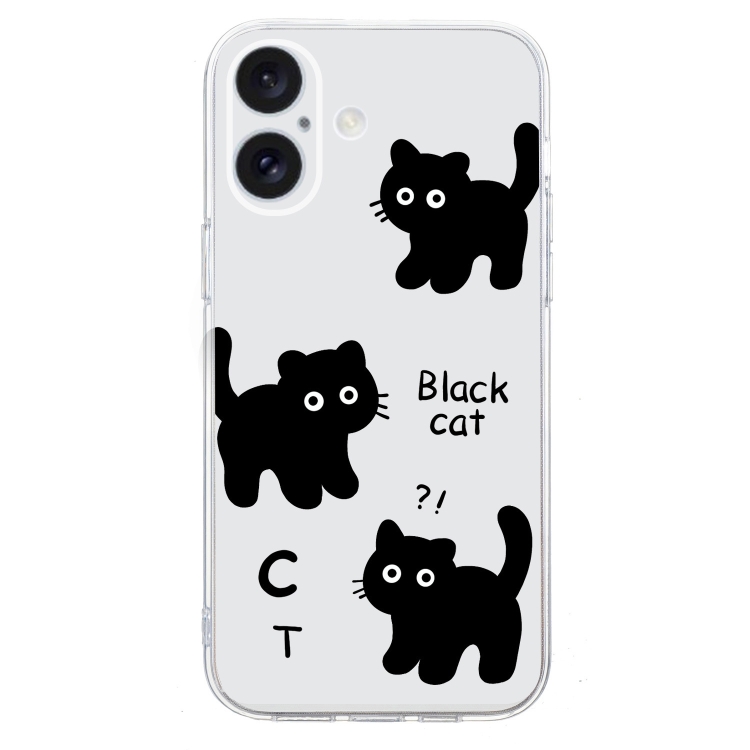 Funda para Teléfono iPhone 16 Plus TPU Transparente con Patrón de Dibujo de Colores (Gato Negro)