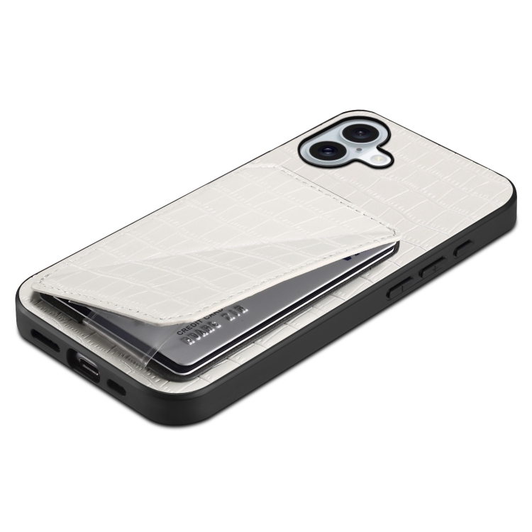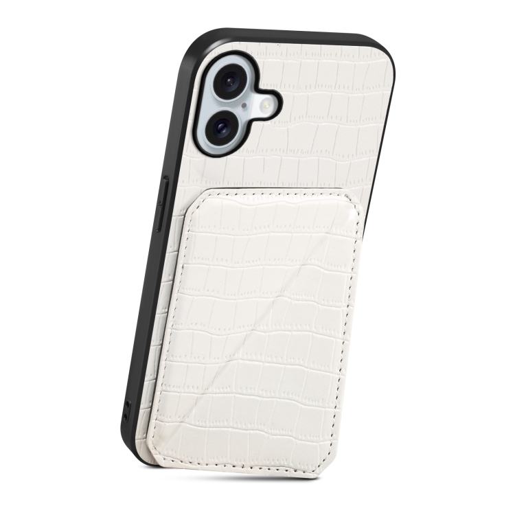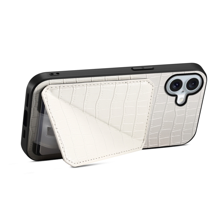 Funda Trasera iPhone 16 Plus Piel de Cocodrilo de Imitación con Soporte (Blanco)