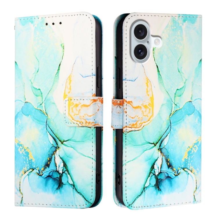 Funda de Cuero para iPhone 16 Plus Pt003 con Tapa y Patrón de Mármol (Verde)