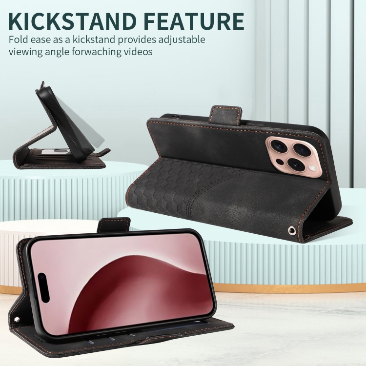Funda para Teléfono iPhone 16 Pro Cuero Estrellado con Rombos En Relieve (Negro)