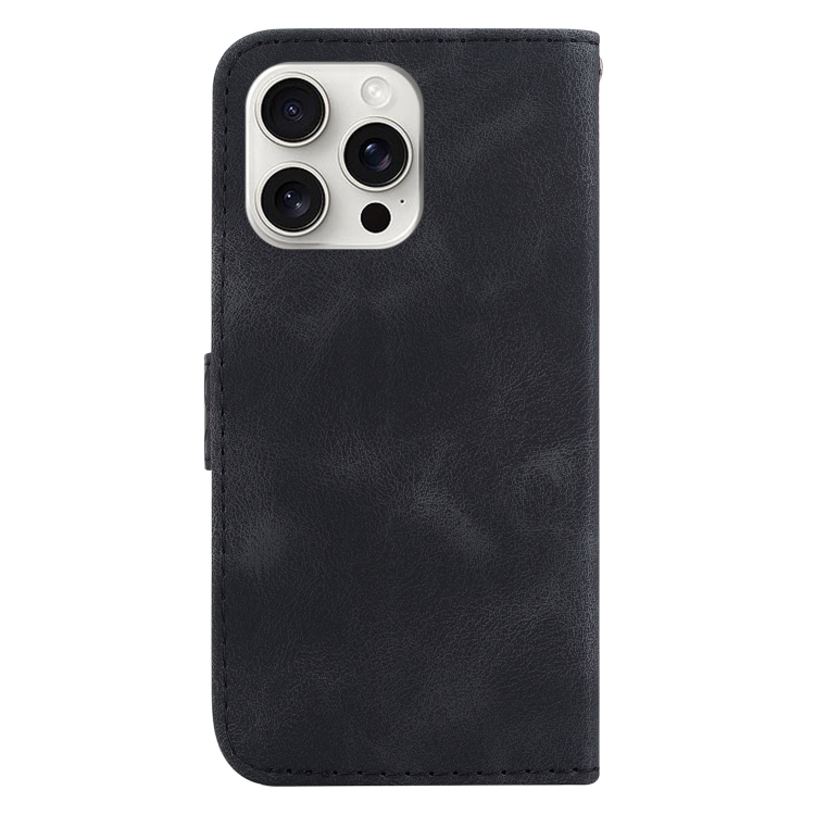 Funda para Teléfono iPhone 16 Pro Max Cuero Relieve Forma de Siete (Negro)