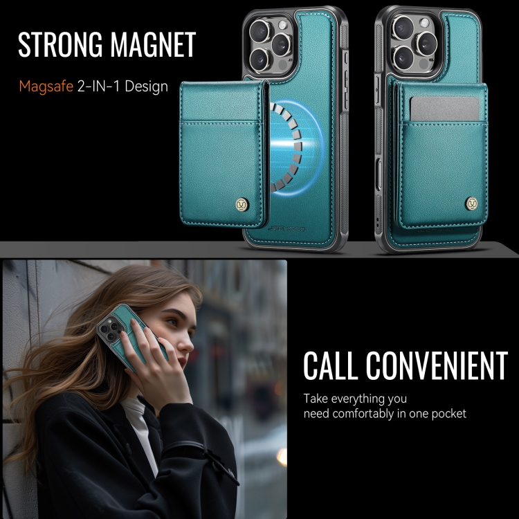 Estuche para teléfono Jeehood J06 iPhone 16 Pro Max con tarjetero Rfid Magsafe (Verde)
