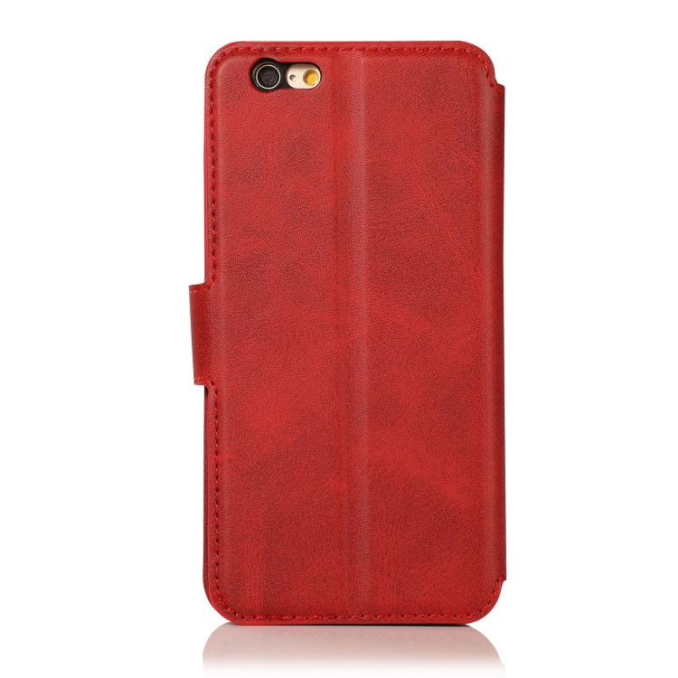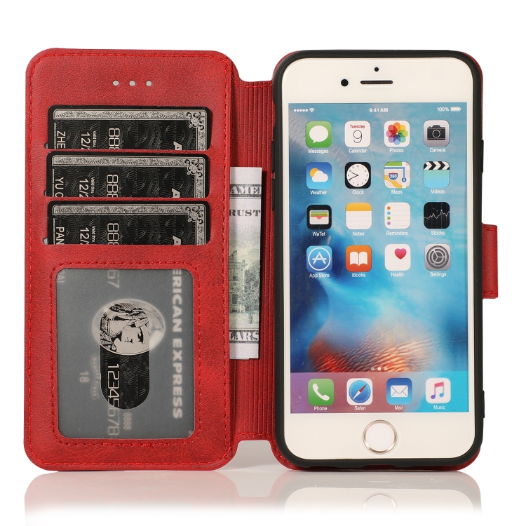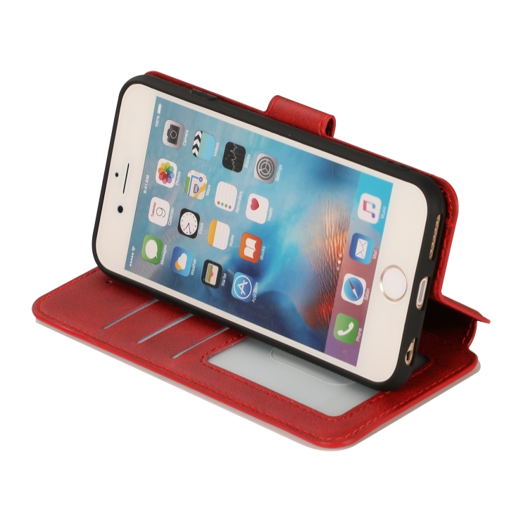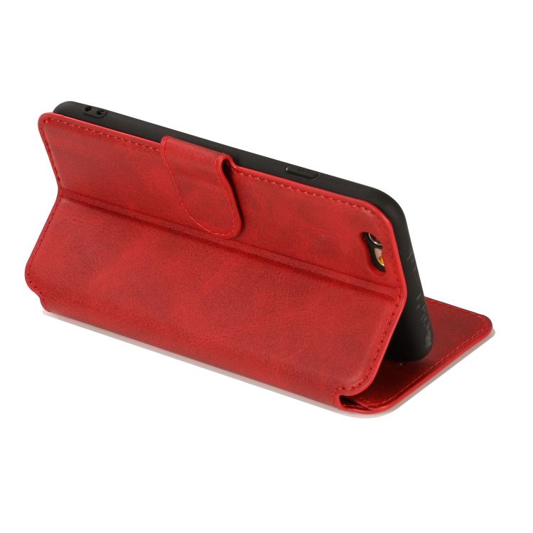 Funda de Cuero para iPhone 6 / 6S con Hebilla Magnética, Tapa Horizontal, Soporte, Ranuras para Tarjetas, Billetera y Marco de Fotos (Rojo)