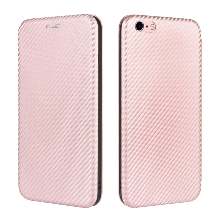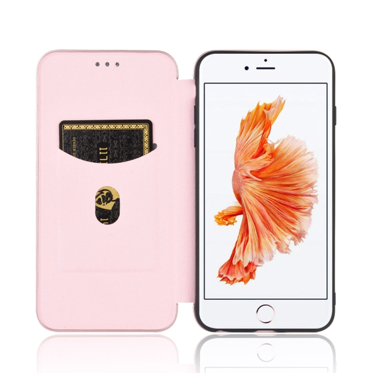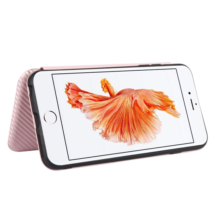 Funda para iPhone 6 / 6S Textura de Fibra de Carbono Flip Horizontal Magnético TPU + PC + Cuero PU con Ranura para Tarjeta (Rosa)
