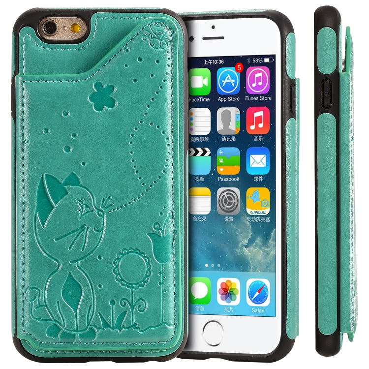 Estuche Protector para iPhone 6 Cat Bee con Patrón de Relieve, Ranuras para Tarjetas y Marco de Fotos (Verde)